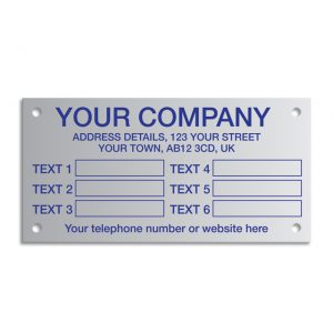 – Anodised aluminium with a selection of sizes, fixing holes or 3M 468 adhesive and the option to add your own text.