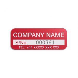 Sequential numbering generally starts 000001 (or similar) with numbers increasing however, we know that you may already have these numbers printed and in use so we offer the option to personalise the numbering. The numbers used may also include a prefix of your choice to further personalise the data plate.